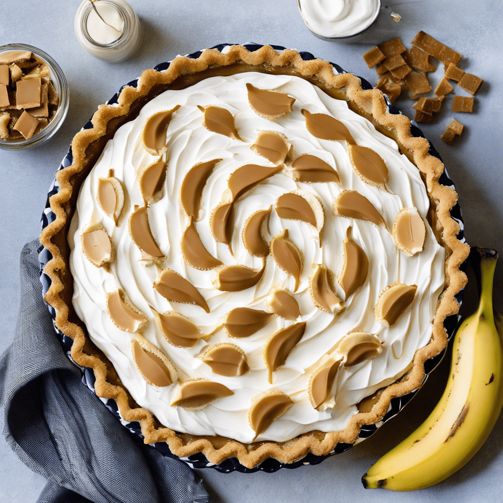 Once the toffee is ready, spread it evenly over the chilled crust. Arrange the sliced bananas over the toffee layer, ensuring even coverage. In a separate bowl, whip the heavy cream with powdered sugar and vanilla extract until soft peaks form. Spread the whipped cream over the banana layer, smoothing it out with a spatula.