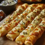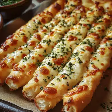 This recipe is easy to make, using simple ingredients like garlic, butter, mozzarella, and your favorite dough. Whether paired with marinara sauce for dipping or enjoyed on their own, these breadsticks are a guaranteed crowd-pleaser for any occasion.
