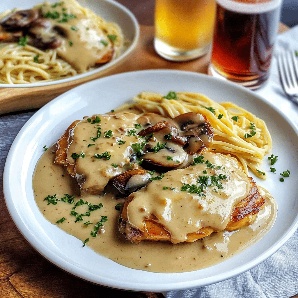 - Chicken Broth: Adds depth to the sauce without overpowering the delicate flavors of the chicken and mushrooms.