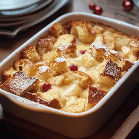 Despite its rich flavor, Eggnog Bread Pudding is surprisingly simple to make. With just a few basic ingredients like bread, eggs, milk, and of course, eggnog, you can whip up a batch in no time. Whether you’re celebrating the season or just looking for an indulgent treat, this dessert will bring a festive touch to any occasion!