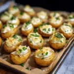 I remember the first time I made these for a Super Bowl party. The platter of mini baked potatoes disappeared within minutes, and the compliments kept coming. What makes these so great is the endless variety of toppings—you can go classic with sour cream, shredded cheese, and chives, or get creative with options like guacamole, spicy salsa, or crumbled feta. For those who want something heartier, crispy bacon bits or pulled pork are perfect additions, while vegetarians will love options like roasted veggies or a dollop of pesto.