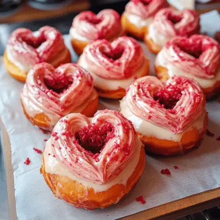 This recipe is as fun to make as it is to eat, making it ideal for Valentine’s Day, anniversaries, or any time you want to spread a little love. Whether dusted with powdered sugar or drizzled with glaze, these donuts are as customizable as they are delicious.