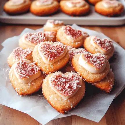 Sweetheart Coconut Cookies are a delicious and charming treat, perfect for expressing love this Valentine’s Day. These soft, chewy cookies are made with shredded coconut, giving them a delightful texture and natural sweetness. With a subtle hint of vanilla and almond, they are not only irresistible in flavor but also visually stunning, shaped as heart-shaped cookies and dipped in white chocolate for an extra touch of elegance. Whether you’re gifting them to loved ones or enjoying them yourself, these coconut cookies will warm hearts and satisfy sweet cravings.